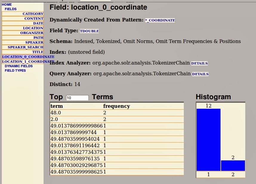 . If the name of our field is location and we are indexing a latitude/longitude pair this would lead to three fields: location, location_0_coordinate, location_1_coordinate